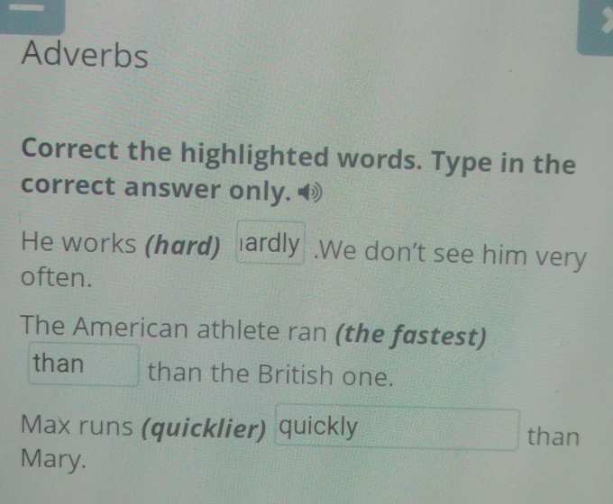 He works hard.We don't see him very often. The American athlete ran faster than the British one. than Max runs quicklier than Mary.