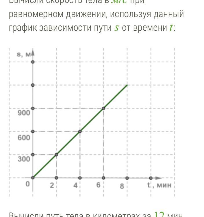 Ответ: скорость тела — м/с; путь тела — км за 12 мин.