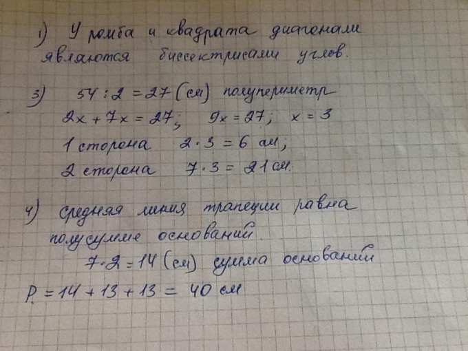 5) медианы точкой пересечения делятся в отношении 2:1 начиная от вершины. СО=СМ:3*2=15:3*2=10