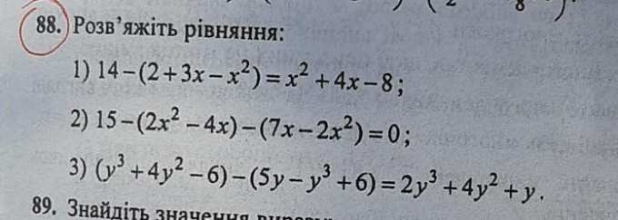 1) 14 - ( 2 + 3x - x² ) = x² + 4x - 8 ;