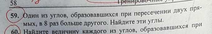 Пусть градусная мера одного угла будет х°, соответственно и вертикального ему будет х°, Тогда градусная мера двух других углов 8х°.